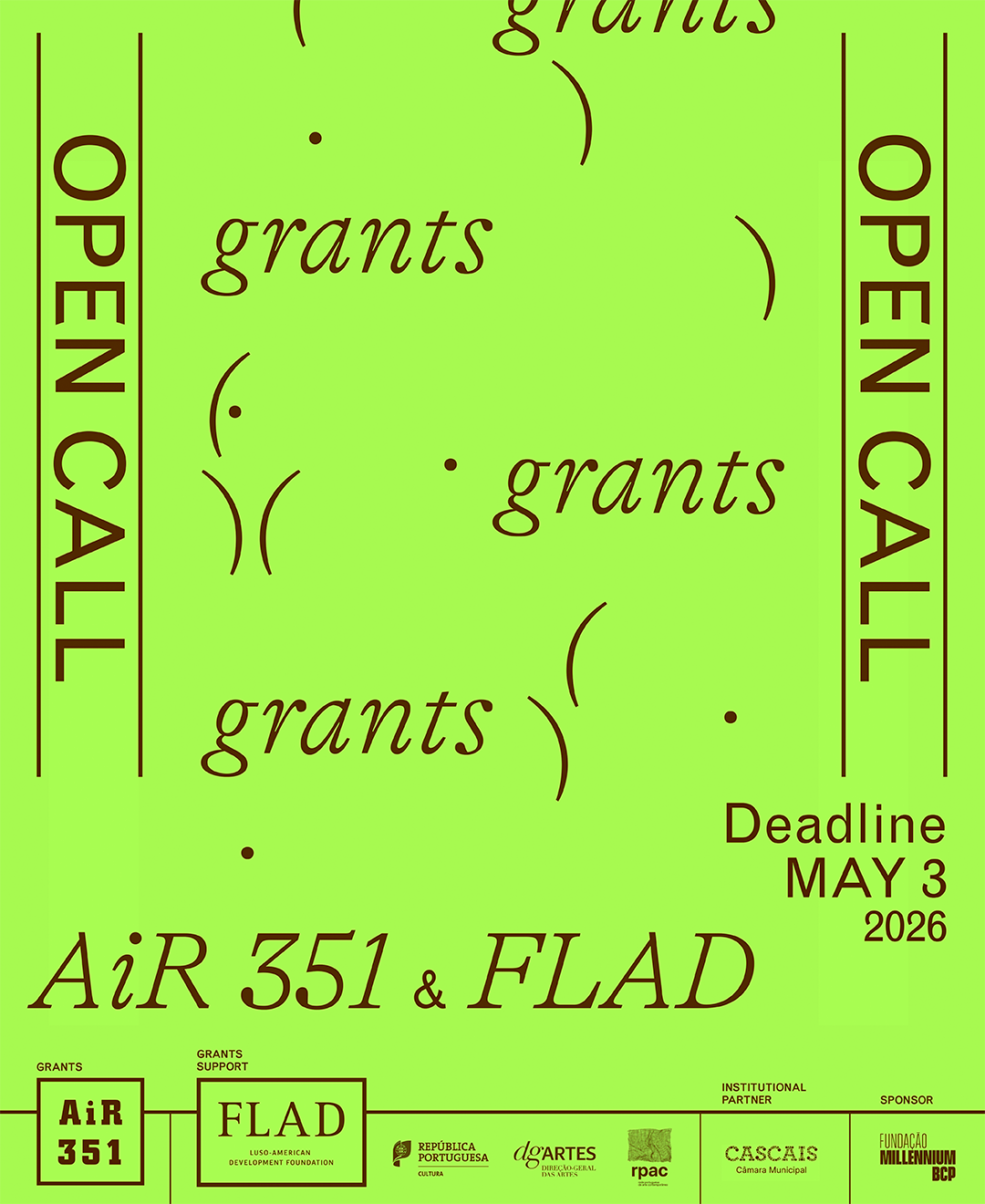AiR 351 Grants / 2026 are targeted for artists and curators not based in Portugal at any stage of practice and will cover a period of 3 months in 2026.